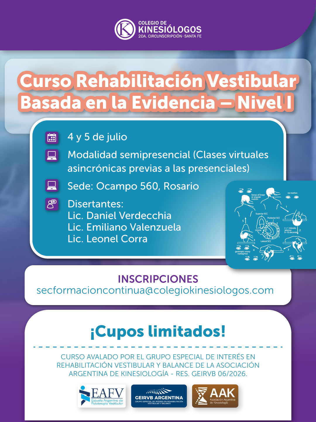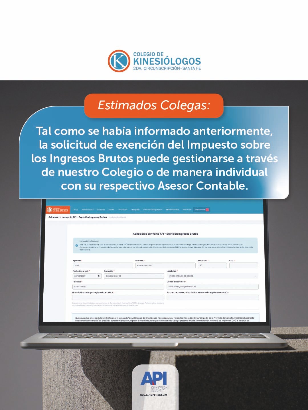 Los aranceles serán los fijados por el Colegio de Kinesiólogos de Rosario